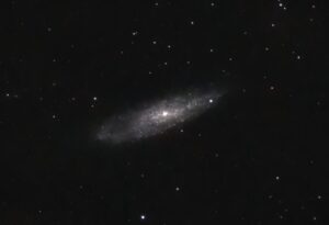 NGC 891, the Silver Sliver Galaxy, lies 30 million light-years away in Andromeda. Seen edge-on, its dark dust lane divides a glowing river of stars — a near twin to our Milky Way. Through the Seestar S50, it reveals a galaxy’s elegant structure, suspended in silent, luminous equilibrium across the cosmos.