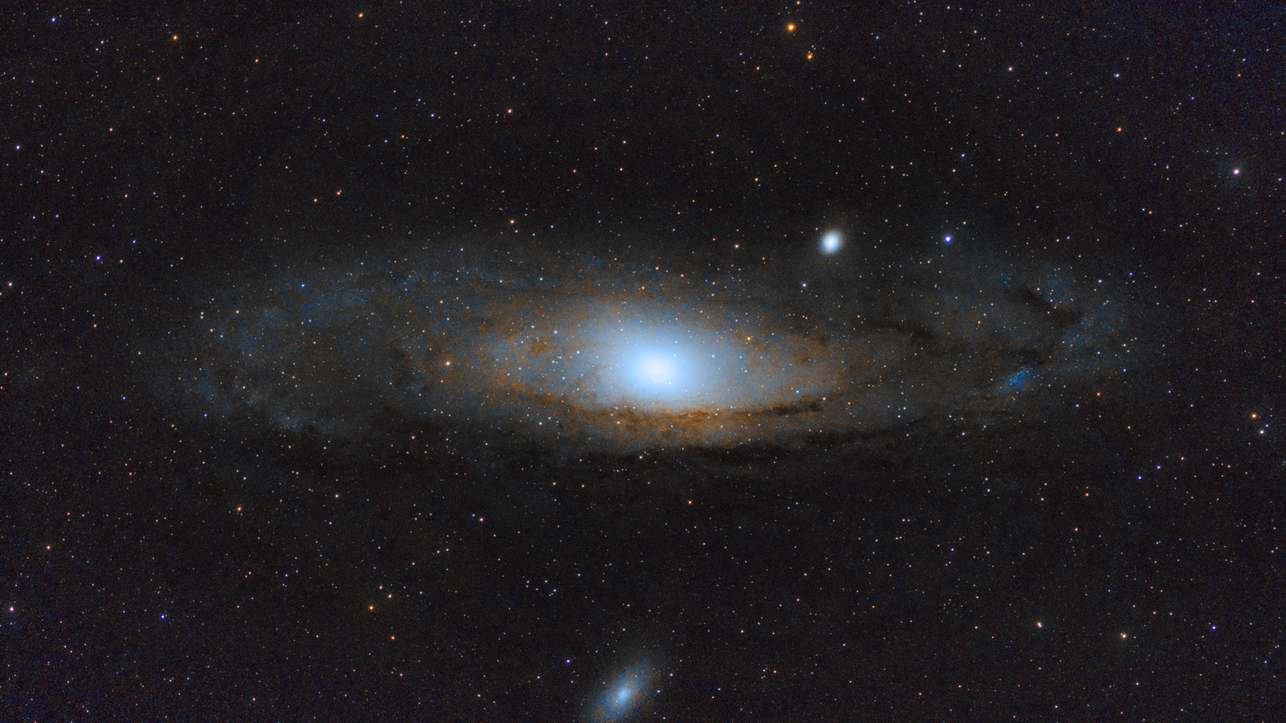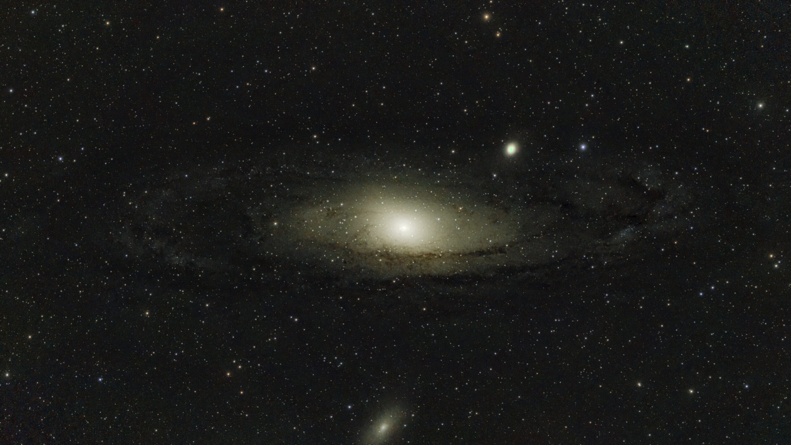 The light captured by your Seestar S50 began its journey 2.5 million years ago, long before humans existed. The faint smudges beside the main disk are dwarf galaxies, M32 and M110, gravitationally bound satellites of Andromeda. Astronomers have measured that M31 is actually moving toward us at about 110 km/s. In roughly four billion years, it will merge with the Milky Way to form a single, giant elliptical galaxy.